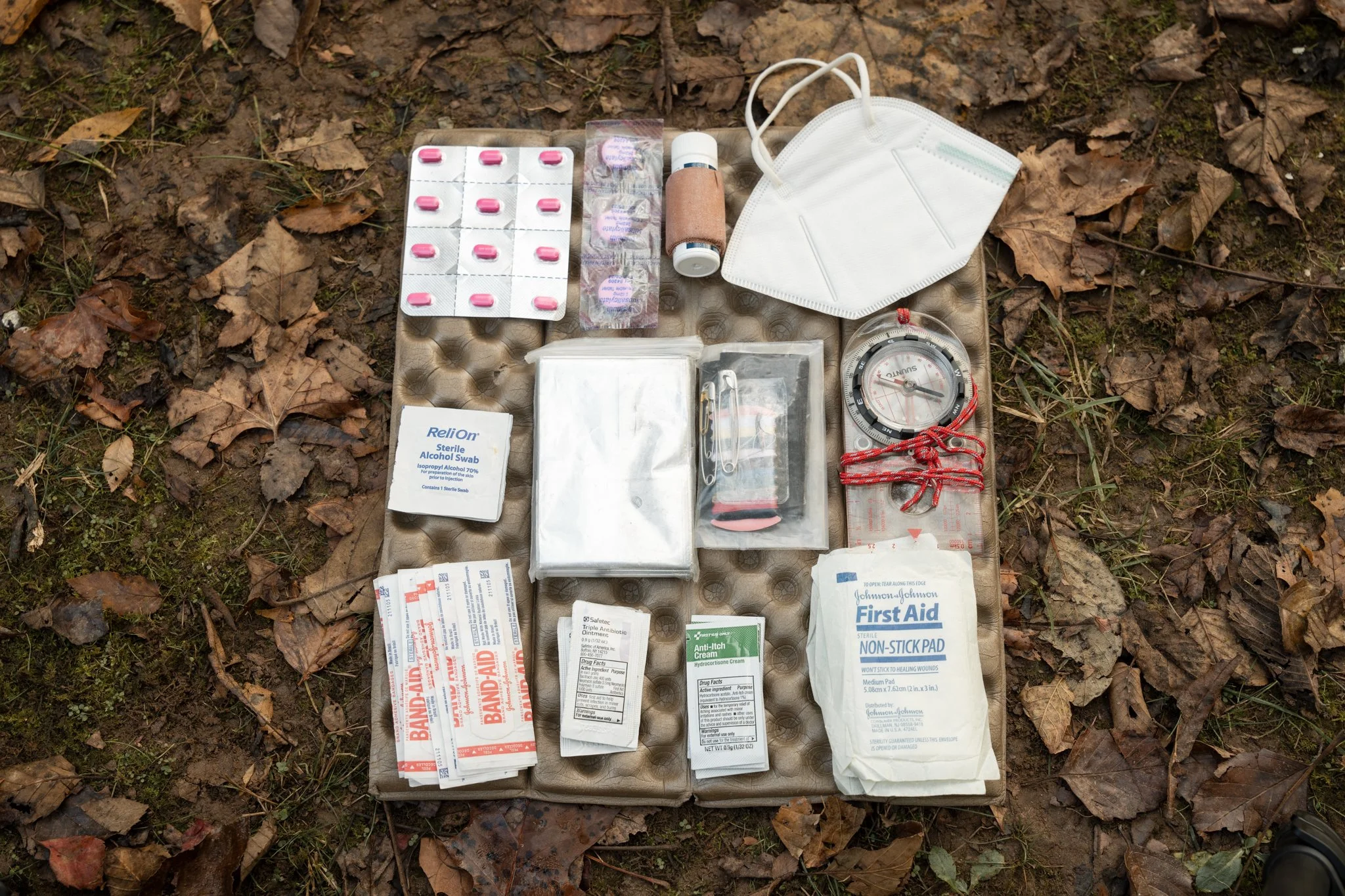 Very Basic First Aid Kit: This is essential for handling minor injuries. This includes: bandaids, neosporn, anti-itch cream, gauze, a compass, a sowing kit, Ibuprofen wrapped with luekotape, alcohol swabs, antihistamines, anti-diarrhea tablets, n95 mask.