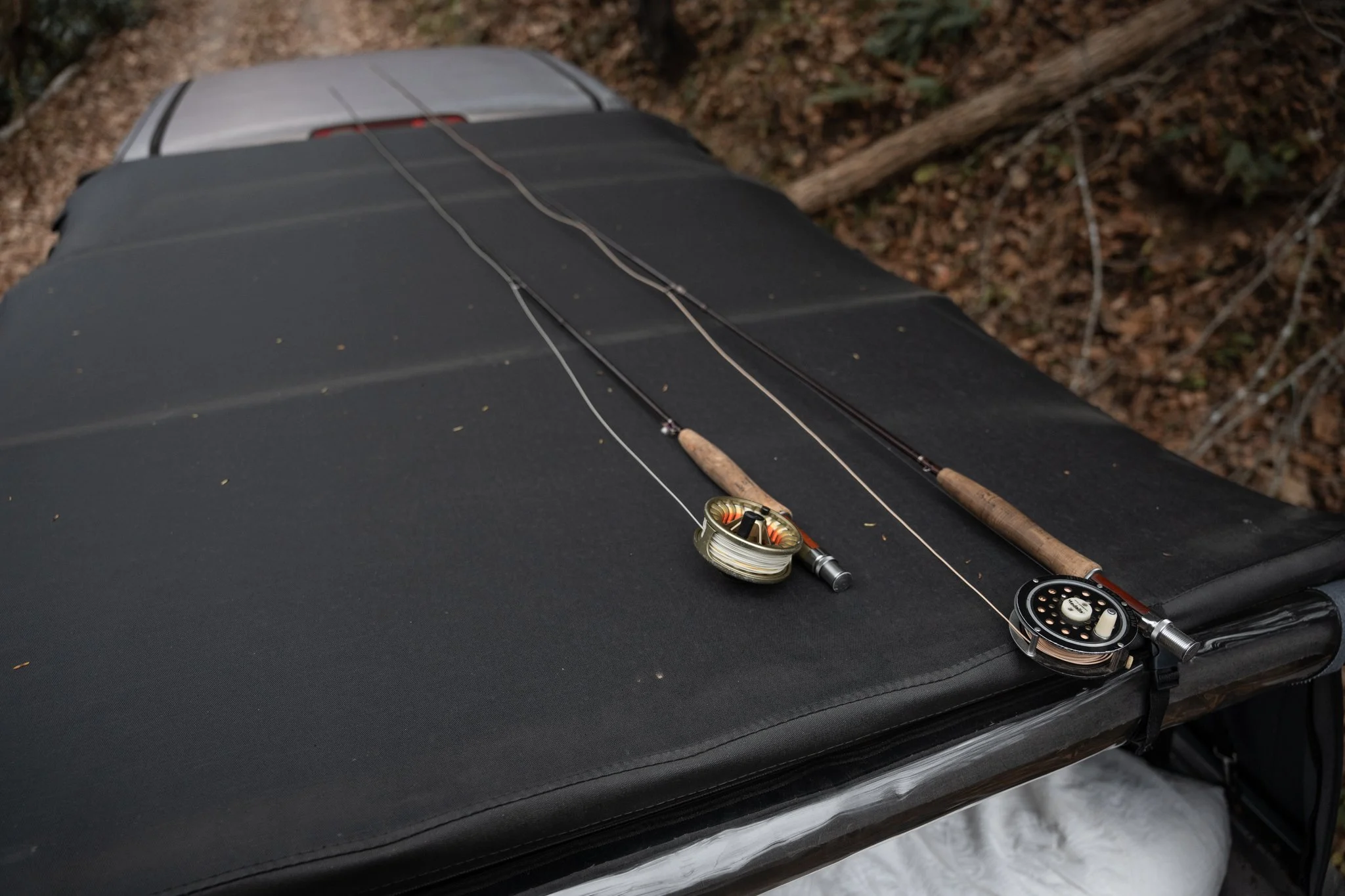 Jeff led us to a graded camping spot beside a small creek. The sun hung low in the sky, but there was still time to fish before we built a fire and cooked dinner. I pulled my 4-weight fly rod from the truck and rigged it up. The nine-foot rod felt awkward here. The creek was narrow, hemmed in by rhododendron and spindly branches along its banks. Out West, this rod is like a trusty pocket knife—useful in almost any situation. Here, it felt like a kid who hadn’t quite grown into his size, clumsy but determined.