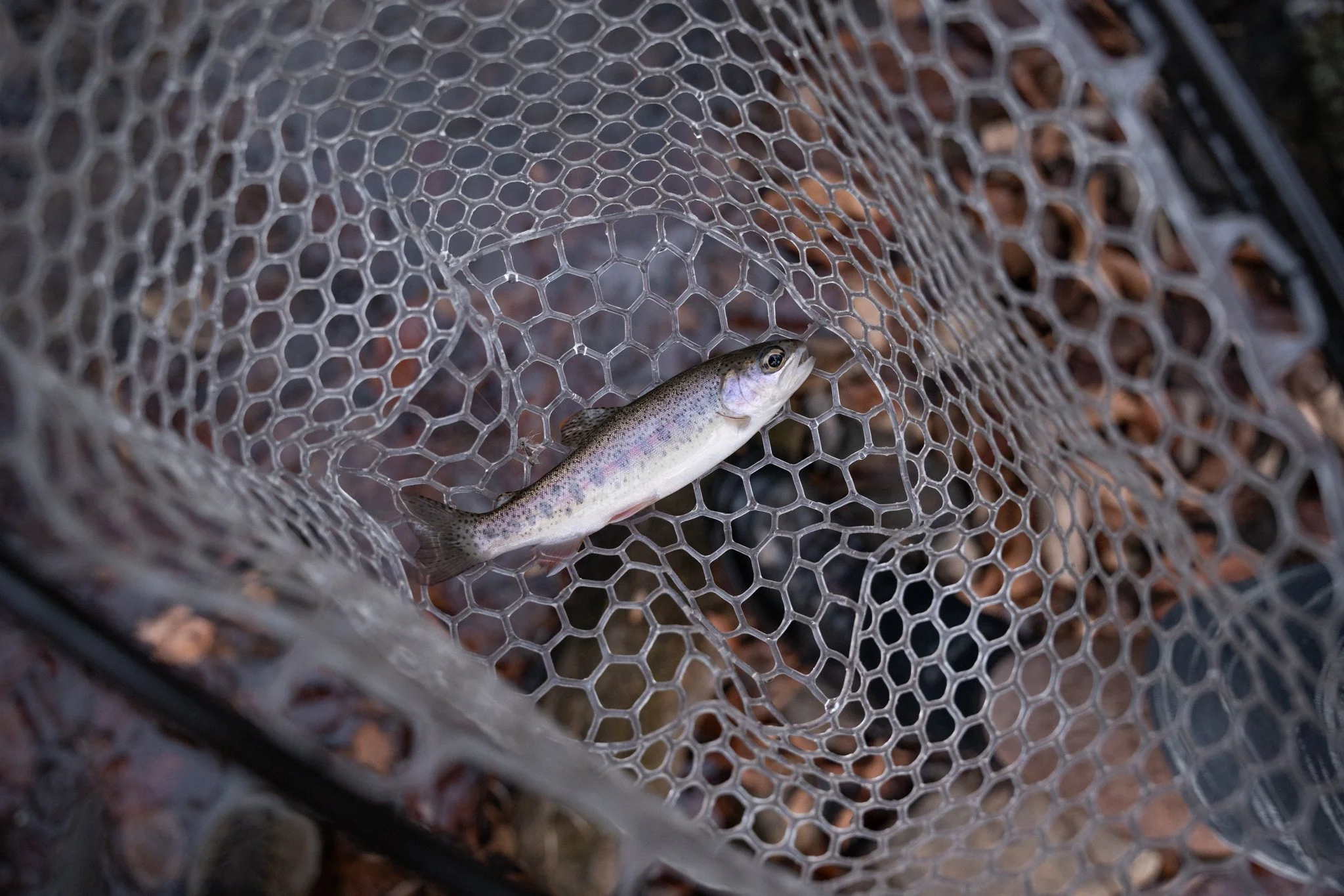 We moved upstream, hopping from one small pocket to the next, pulling out tiny native rainbows when our luck and skill aligned. We fished until the light had nearly disappeared, the creek just a shadow in the dusk.