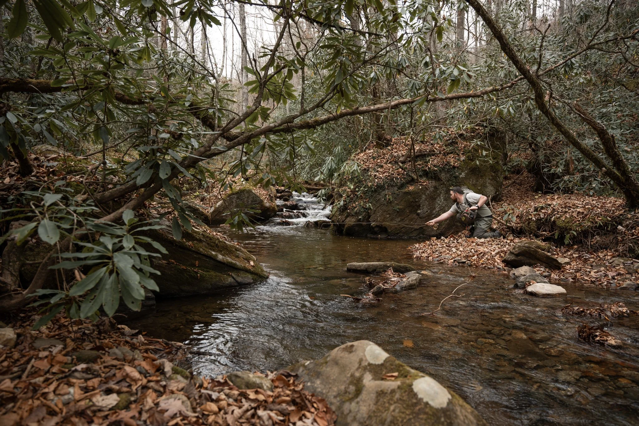 My first cast was stiff and awkward, the fly snagging a low-hanging branch. I felt a pang of embarrassment and frustration at the creek’s smallness. Beside me, Jeff worked his 3-weight with ease, a bow-and-arrow cast sending his fly effortlessly beneath the tangled rhododendron. I couldn’t help but smile. The fishing wasn’t the point—not really. Being here, finally at home—in the place I love most, sharing this time with an old friend—that was the point.